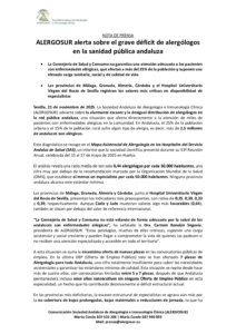 211125 NdP. ALERGOSUR alerta sobre el grave déficit de alergólogos en Andalucía